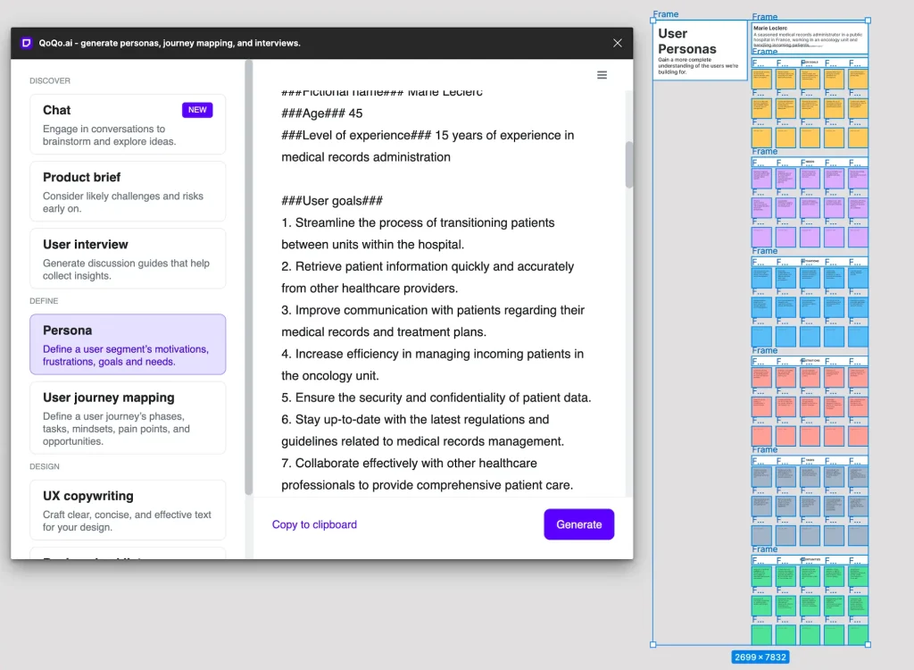 QoQo is a Figma-based discovery assistant that helps you get from a blank canvas to a structured research plan. It analyzes your product idea to flag possible friction or accessibility risks, turns messy FigJam/Figma notes into affinity-mapped themes, and generates contextual interview scripts based on the user personas it builds with you.