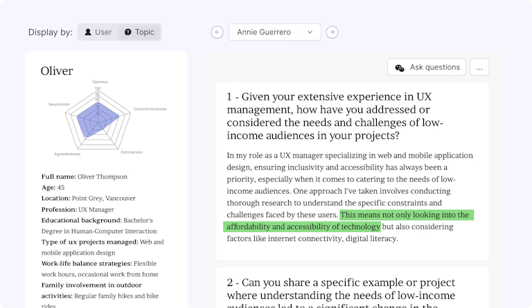 - AI persona templates: Builds draft persona templates from a few project inputs that you can refine with qualitative data