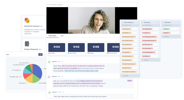 - Data analysis and synthesis tools: Analyze user data, tag themes, surface patterns, and help you quickly generate reports or highlight reels