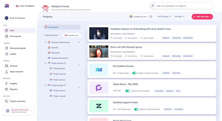 - Cut synthesis time: Auto-transcription, tagging, and clustering shrink the gap between running a study and having usable insights