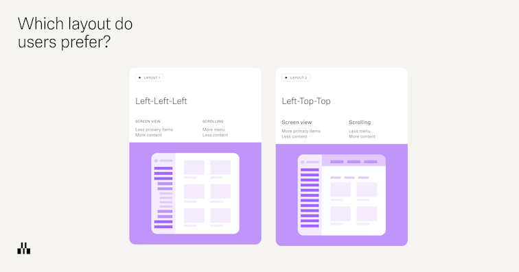 - UI components: You’ve created two versions of a settings screen, one with tabs, one with a sidebar. Preference testing tells you which layout users find more intuitive, giving you a head start before testing with interactive prototypes.