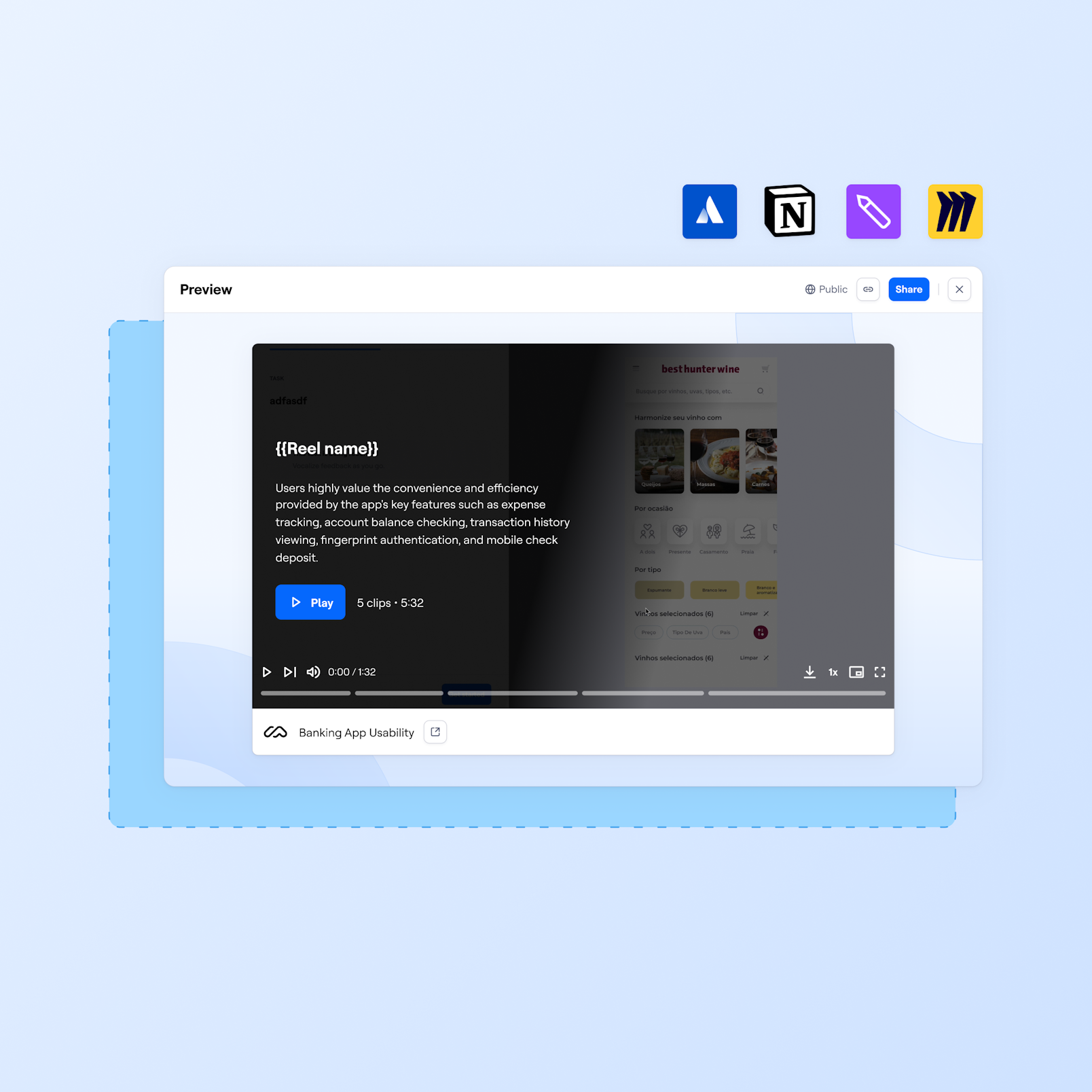 Embed and share Clips and Highlight Reels within your team’s favorite collaboration tools, so everyone stays aligned and informed.