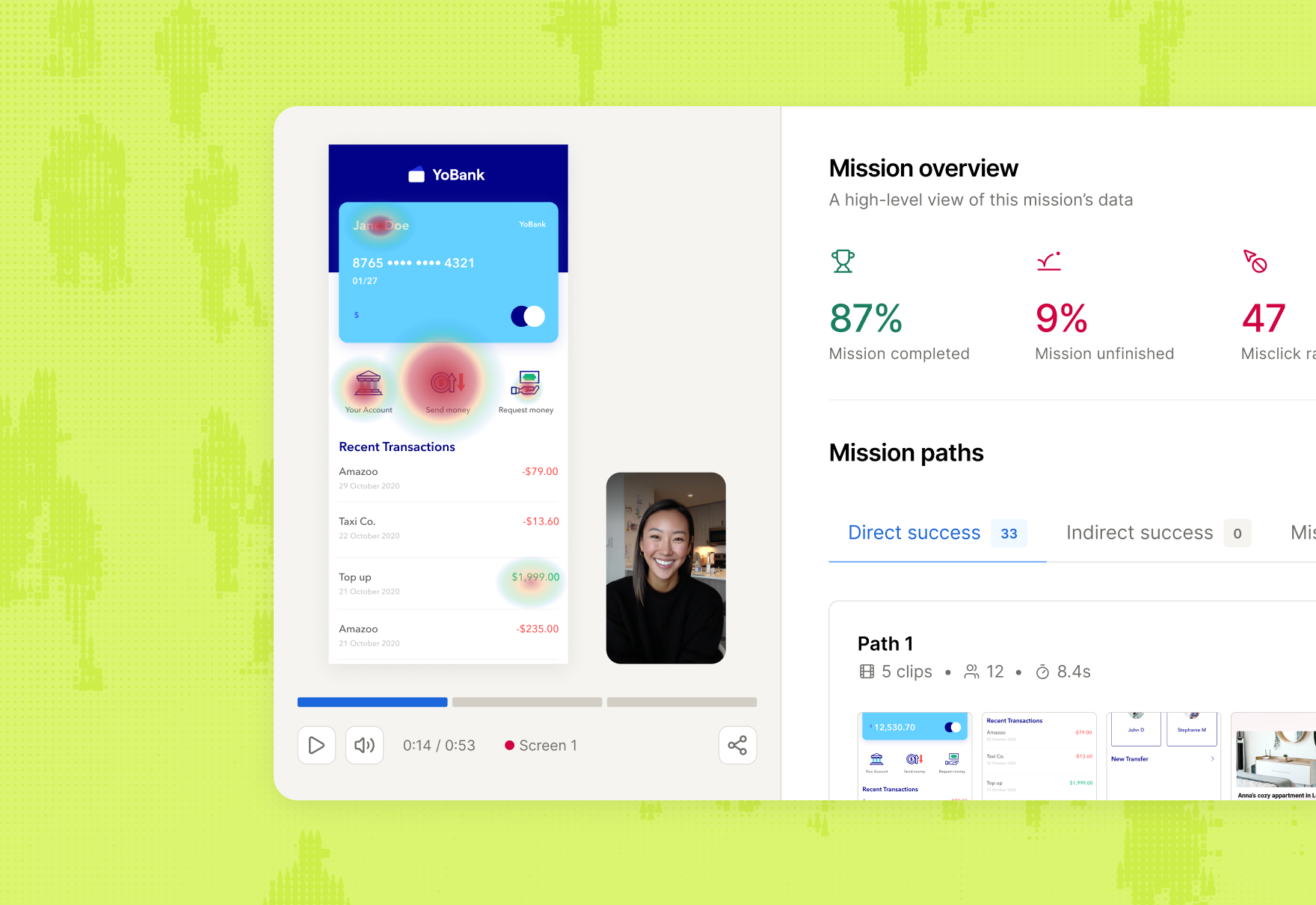Make core improvements to your design with metrics like misclicks and time-on-screen guiding you towards success.