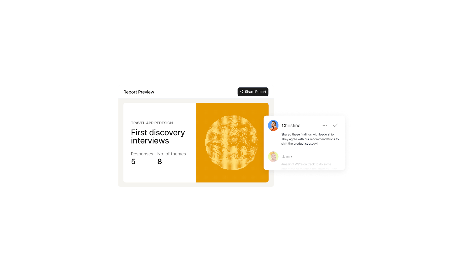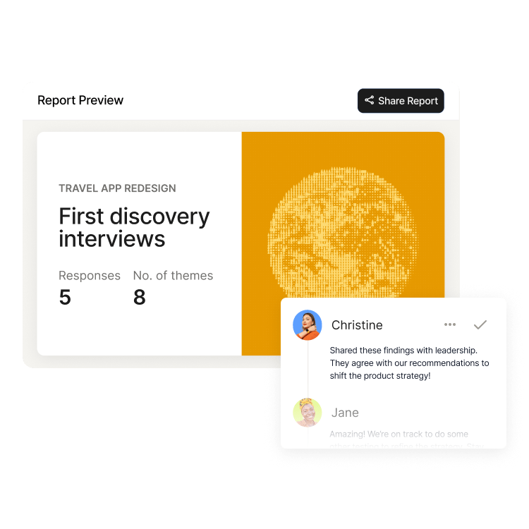 Present findings, share reports, and keep insights in one place where your whole team can act on them.