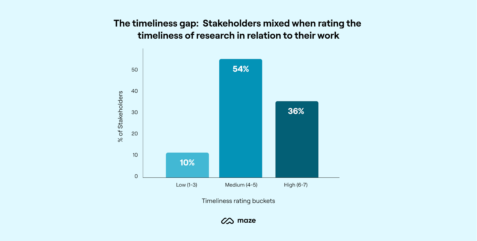 Researchers and stakeholders agree on the tablestakes: research needs to be fast, timely, and rigorous (we’ll come back to the rigor challenge later). Timeliness and speed were the most often cited challenges, with researchers stating that “tight deadlines make it hard to run proper studies” while stakeholders shared that “decisions are made before research finishes.”